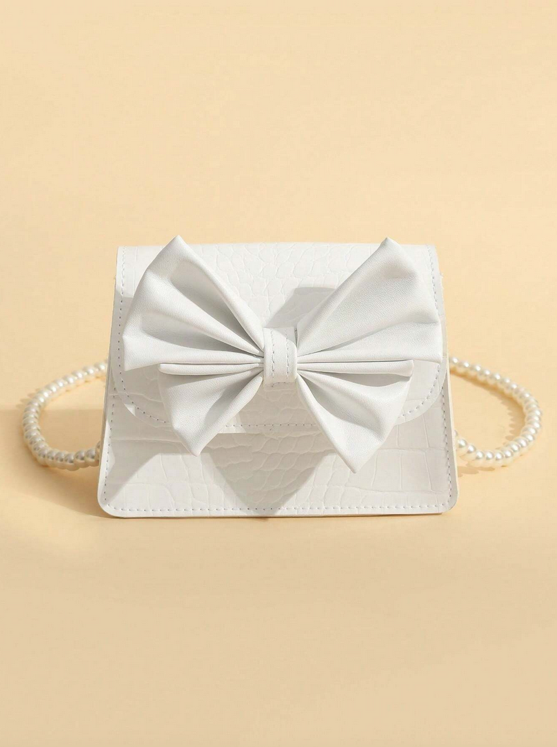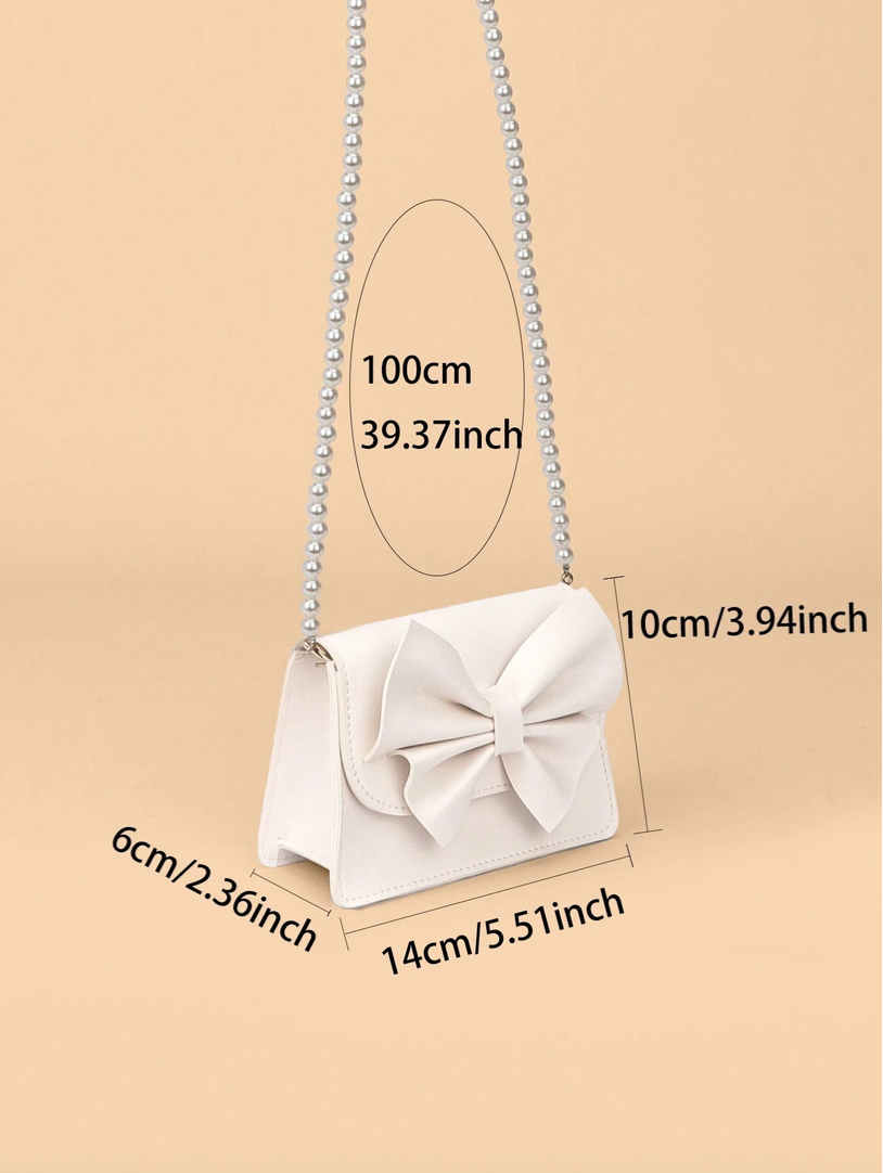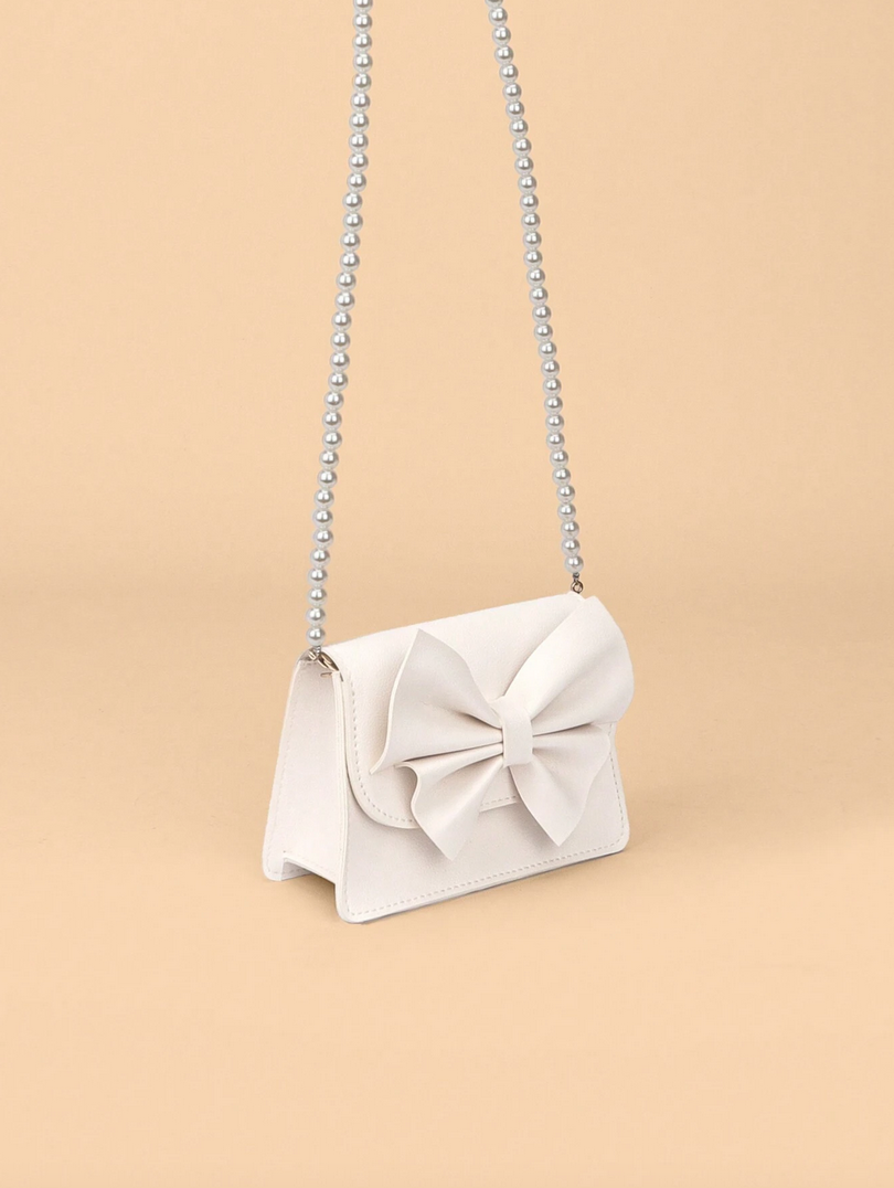 Osrednji okrasni element te torbice je očarljiva, velika mašna, ki je nameščena na zavihku torbice. Ta klasična, a hkrati sodobna dodelava torbici daje poseben značaj in poudarja njen dekliški čar. Mašna je izdelana iz istega materiala kot preostali del torbice, kar celoti dodaja harmonijo in eleganco. Klasična bela barva torbici daje vsestranskost – ustreza tako svetlim kot temnim tonom oblačil, zaradi česar je univerzalni dodatek v garderobi vsake deklice.