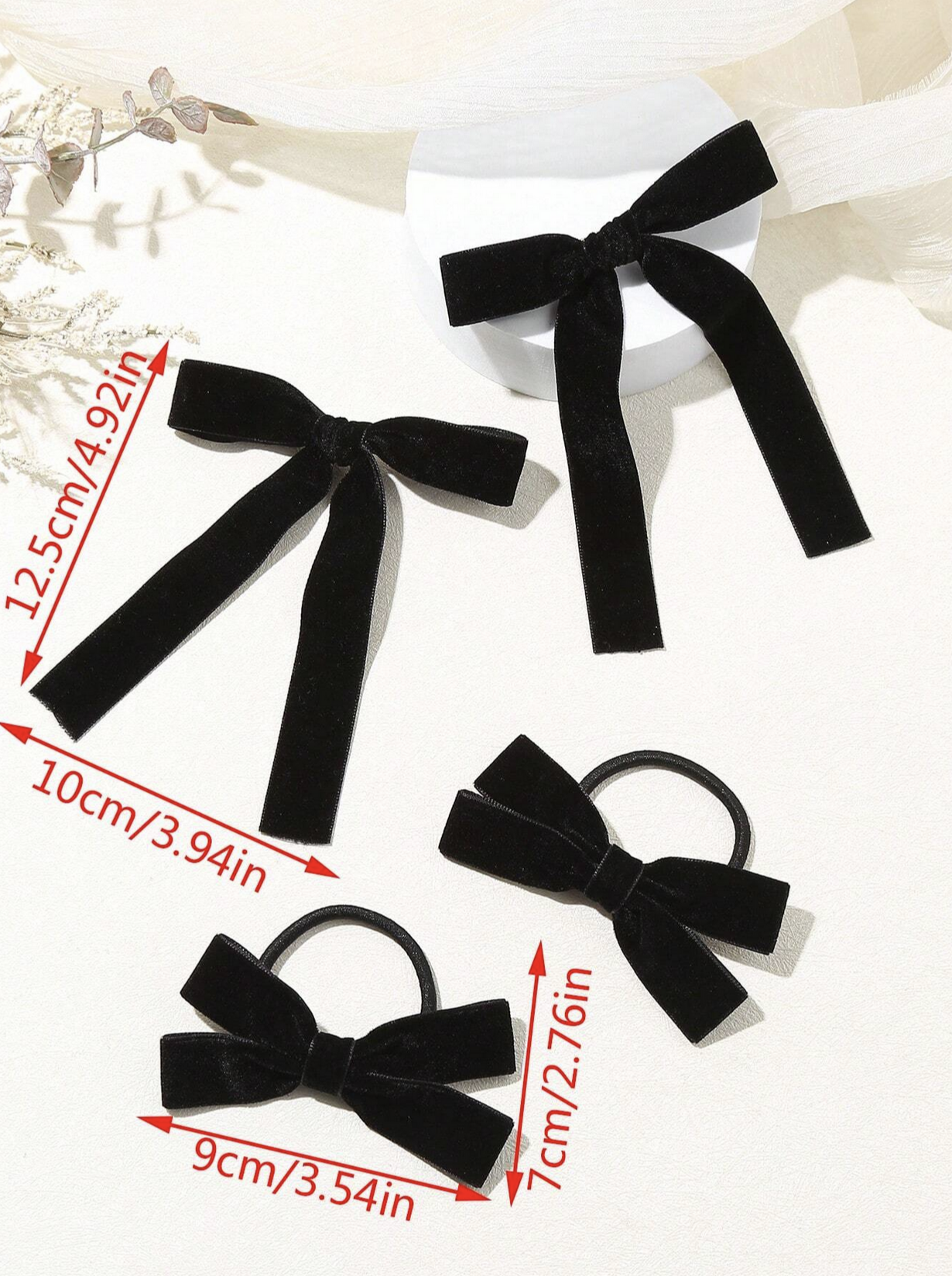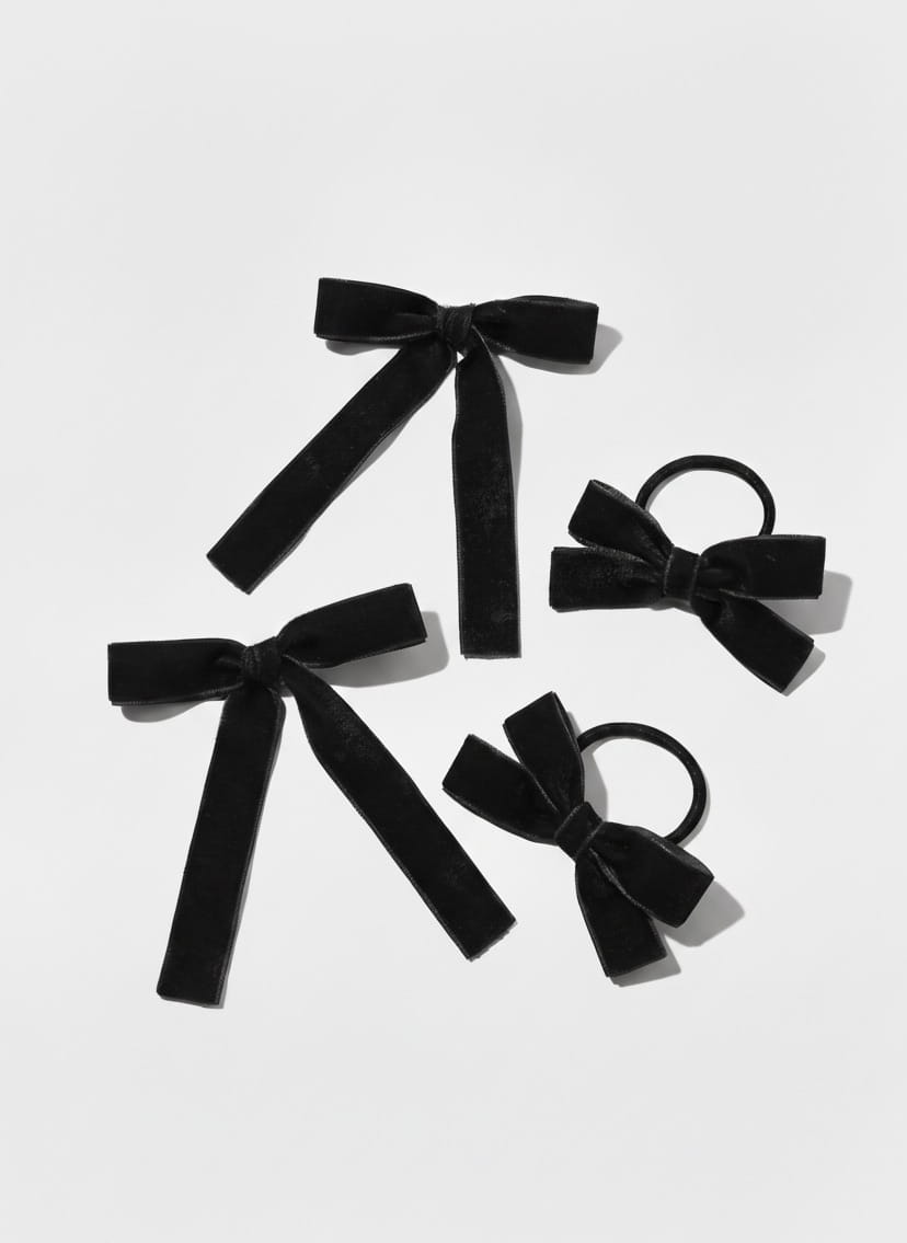 Črni žametni komplet sponk in elastik za deklice – klasična eleganca