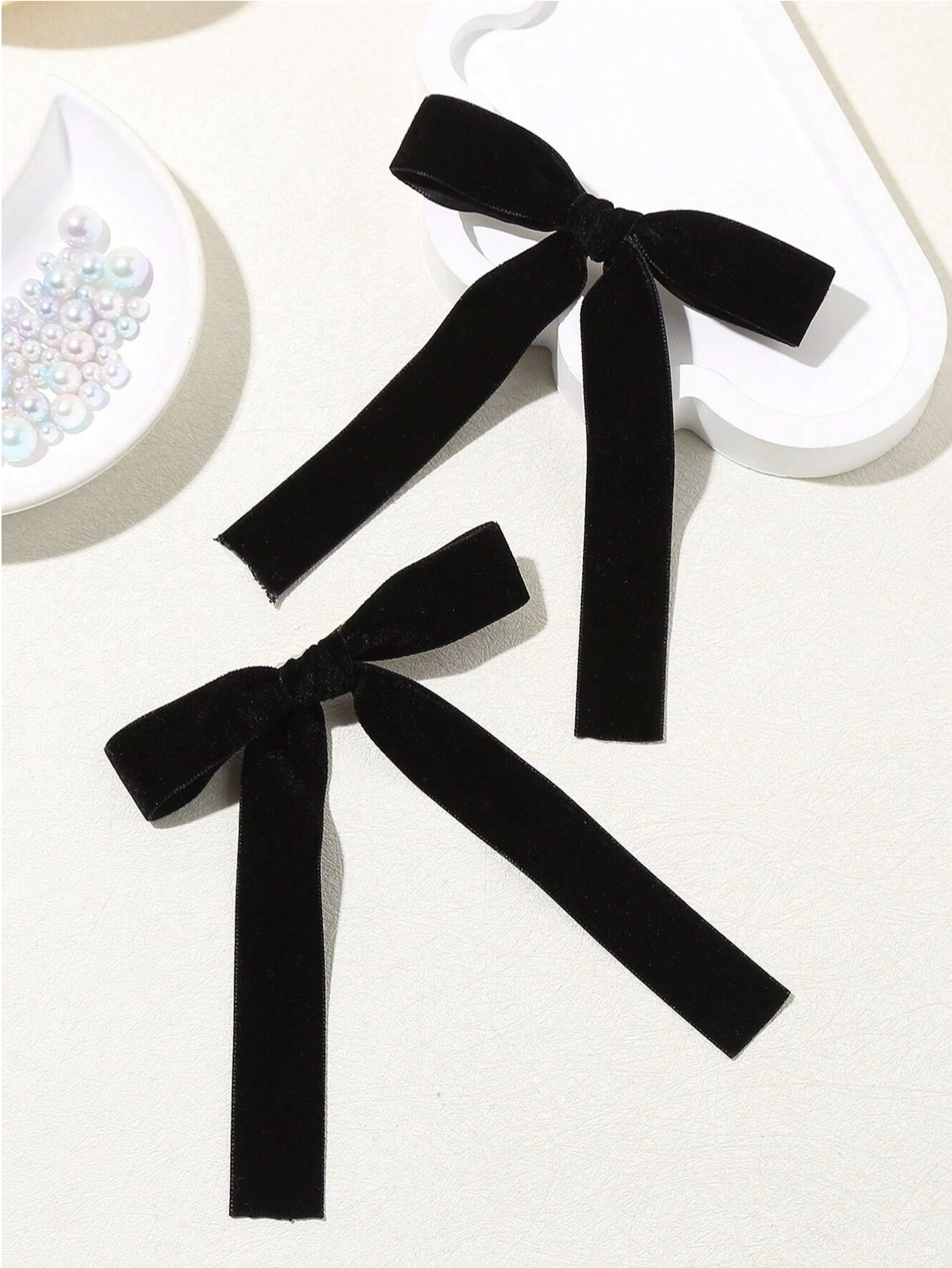 vsebina kompleta: 2 žametni sponki + 2 elastiki za lase s pentljo