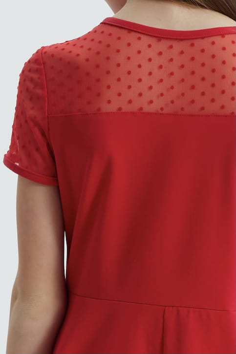 Rdeča dekliška obleka Elly združuje čar, eleganco in udobje – popolna kreacija za vsak poseben trenutek v življenju vašega otroka. Z unikatnimi detajli, kot je pikčast til, in udobnim krojem obleka deklicam zagotavlja ne le čudovit videz, ampak tudi popolno svobodo gibanja. Investirajte v brezčasno kakovost in izberite obleko Elly – naj vaš otrok zasije na vsakem dogodku!