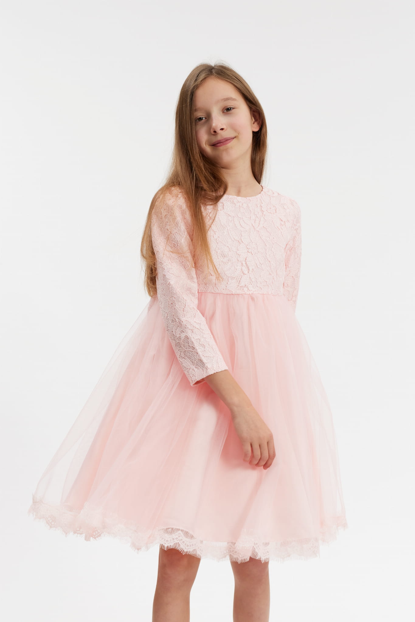 Kayra – rožnata svečana obleka za deklice s tilom in čipko
