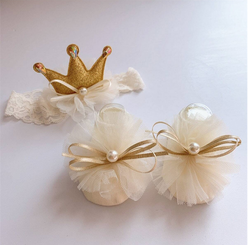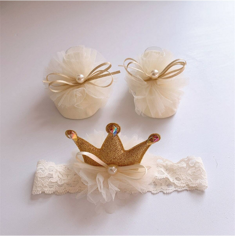 "Komplet Male Princeske" je edinstven predlog za starše, ki želijo svojega dojenčka obkrožiti z nežnostjo in kraljevskim sijajem. Komplet sestavljajo protizdrsne nogavičke in neutesnjujoč trak za glavo, oba v smetanovi barvi, ki bosta dodala sijaj vsaki priložnosti.