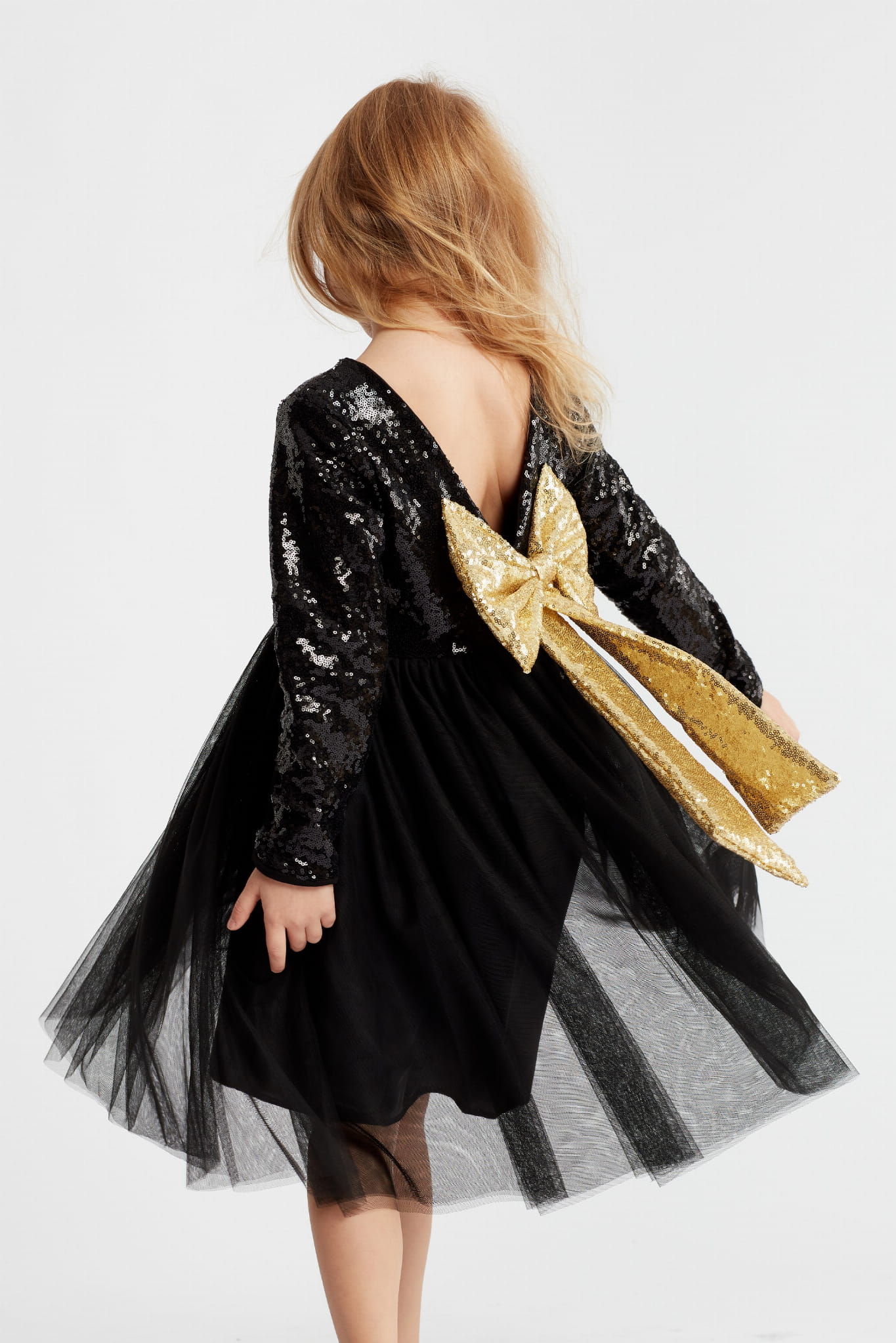 Obleka iz visokokakovostnega materiala. Zgornji del obleke je okrašen z bleščicami, pentlja z bleščicami zadaj v pasu pa obleki doda svojevrsten čar. Pentlja se popolnoma ujema z efektnim izrezom na hrbtu. Zgornji del je podložen z bombažno podlogo. Spodnji del obleke je izdelan iz dveh slojev tila in s podlogo, kar zagotavlja izredno udobje pri nošenju.
