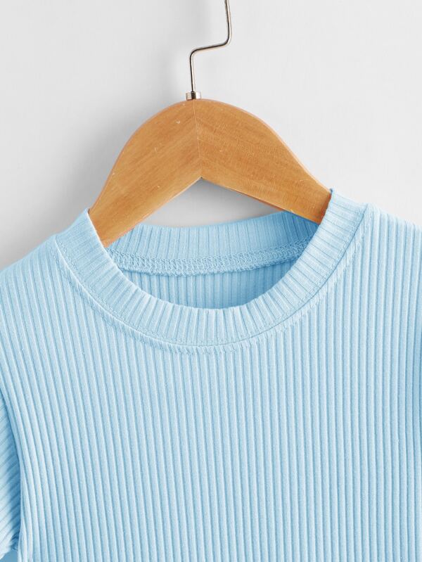 Dekliška obleka iz mehkega, prijetnega bombaža v obliki cevi. Rebrasta tekstura doda obleki čar.