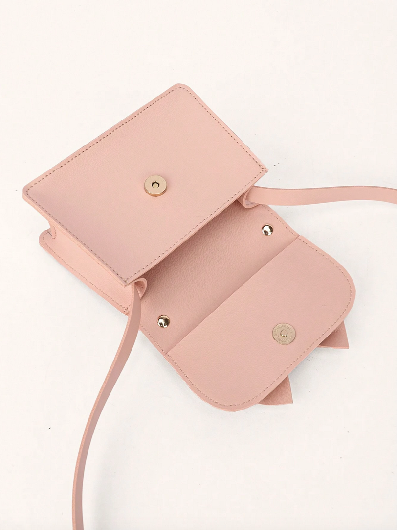 Ta ljubka torbica se ponaša z nežnim, pastelno roza odtenkom, ki ni le moden, ampak se tudi zlahka kombinira z različnimi stili, tako formalnimi kot vsakdanjimi. Sprednjo stran torbice krasi velika, elegantna pentlja, ki ji doda čar in dekliški značaj. To je detajl, ki bo zagotovo pritegnil pozornost in poskrbel, da se bo vsaka deklica počutila posebno.