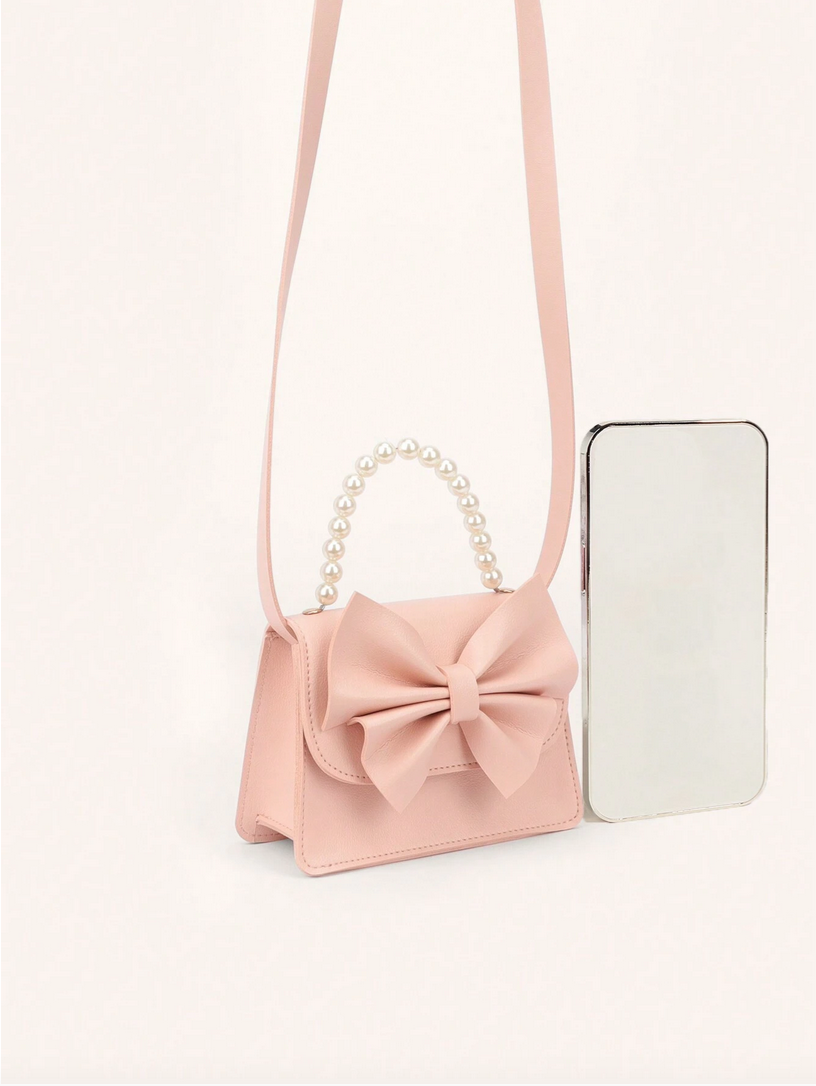 Elegančna roza torbica za deklice s pentljo in biserčki