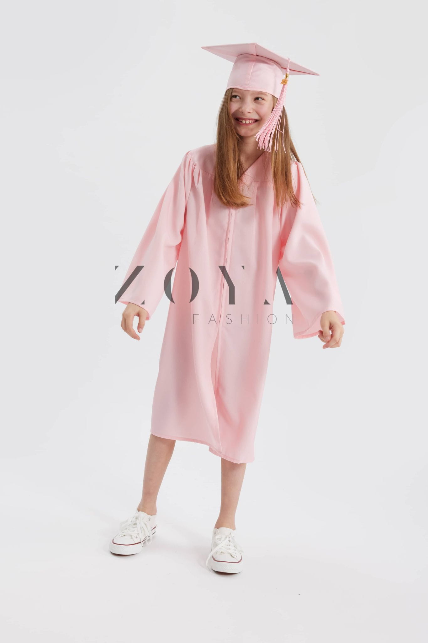 - Nežen, pastelen odtenek rožnate – idealna izbira za radostno, svečano zaključno slovesnost, ki se odlično predstavi tako v živo kot na fotografijah.