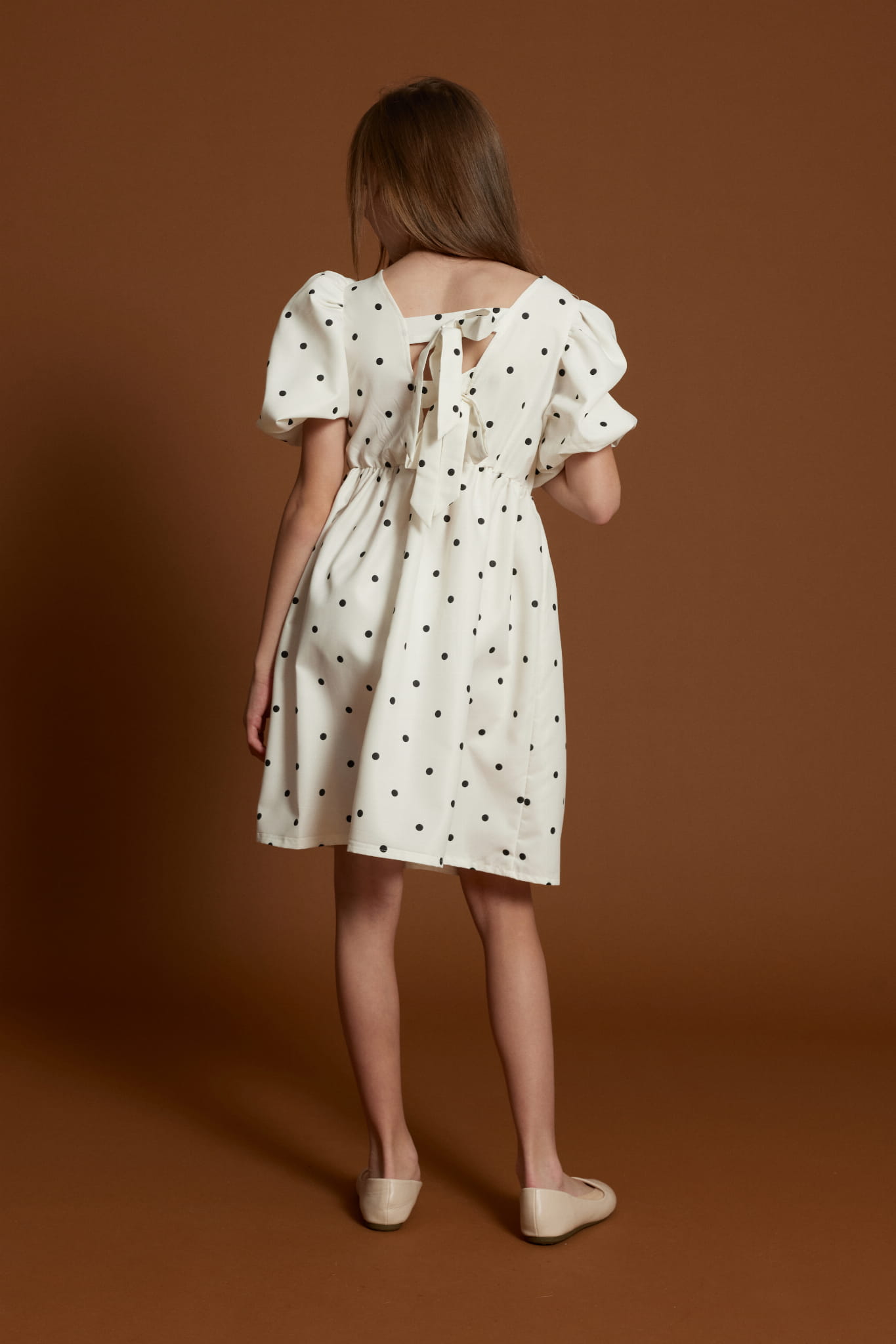 Svečana obleka za deklice Nora bela s črnimi pikami